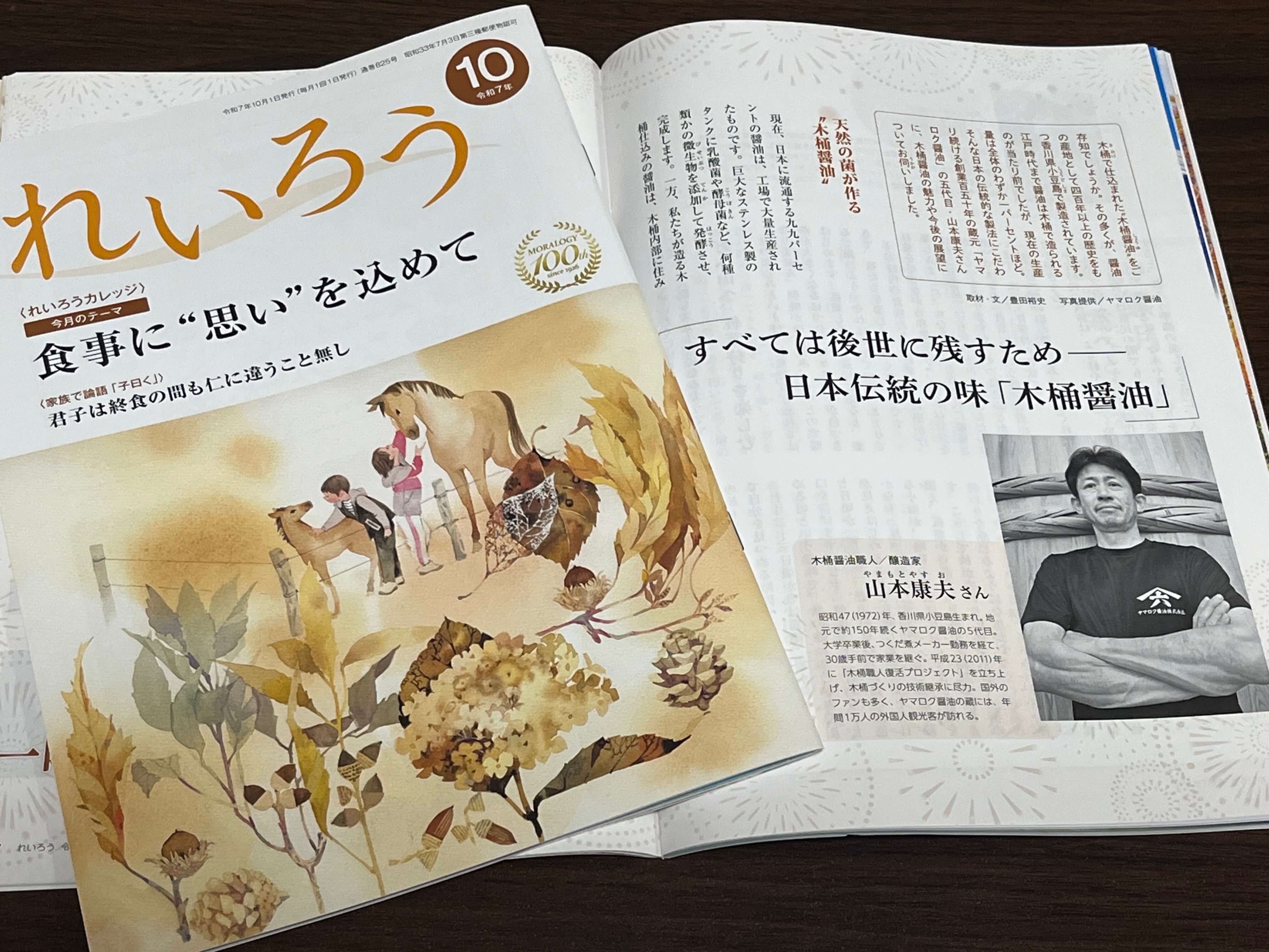 このたび、雑誌『れいろう』令和7年10月号「一隅を照らす」において取材・執筆を担当いたしました。取材させていただいたのは、木桶醤油職人の山本康夫さんです。