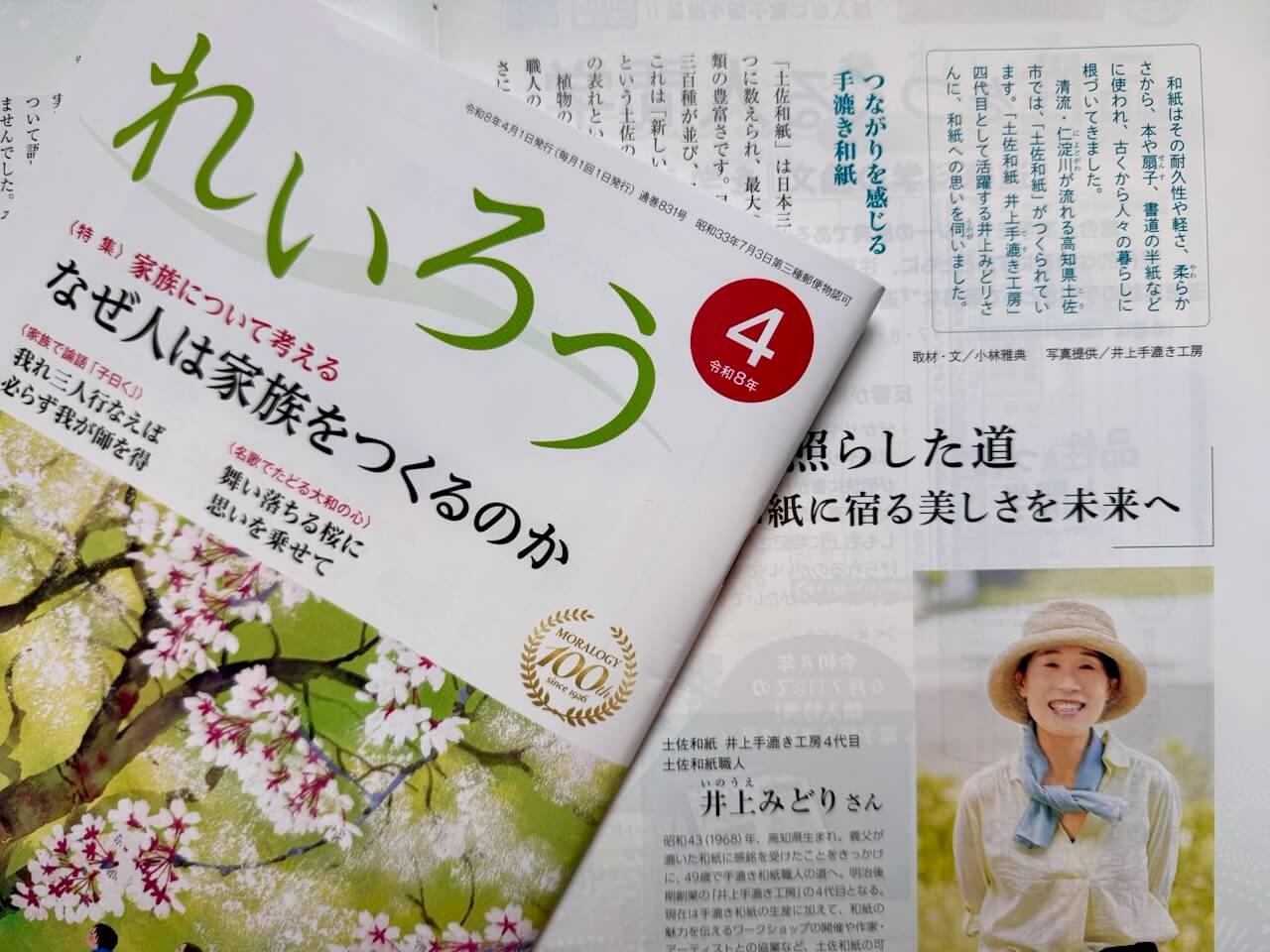 このたび、雑誌『れいろう』令和8年4月号「一隅を照らす」にて、「一筋の光が照らした道――土佐和紙に宿る美しさを未来へ」を執筆いたしました。
