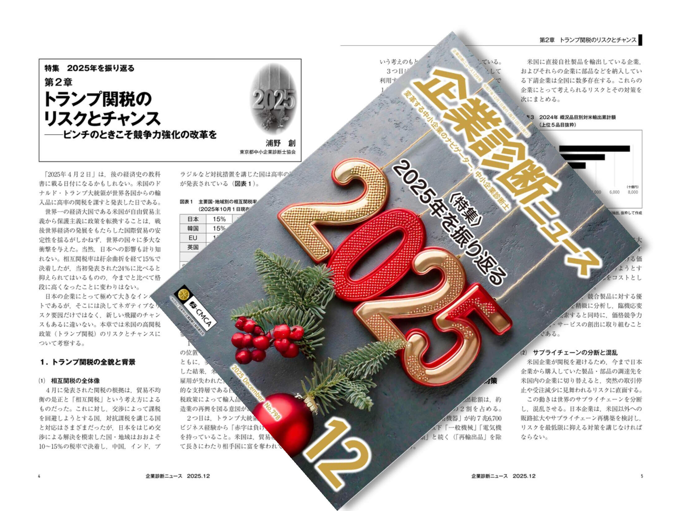 このたび、日本中小企業診断士協会連合会の会報誌『企業診断ニュース』2025年12月号にて、特集「2025年を振り返る」の第2章「トランプ関税のリスクとチャンス」を執筆させていただきました。